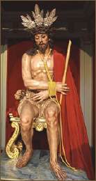 La Sagrada Imagen procede de un Ecce Homo (s. XVIII) de autor anónimo; reformado a finales del siglo XIX por Antonio Alba que le dota de piernas. En 1993 es restaurada y reformada por Rafael Amadeo Rojas que le realiza nuevas piernas. En las esquinas los cuatro evangelistas del imaginero sevillano Antonio Castillo Lastrucci (1959). Las potencias en plata sobredoradas de Manuel de los Ríos. Las cartelas, relieves con motivos alusivos a la Pasión, de Rafael Amadeo Rojas.